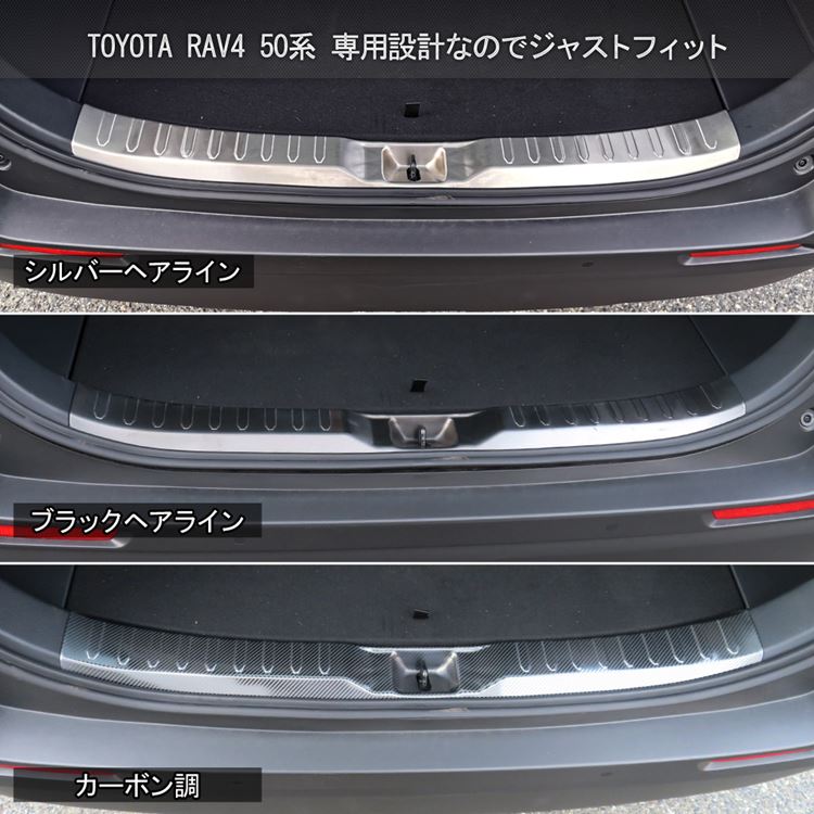 新型RAV4 50系 リアバンパーステップガード 1P 車体保護ゴム付き 選べる3カラー シルバー ブラック カーボン調 MXAA54 AXAH54 AXAH52 MXAA52 トヨタ RAV4 ラゲージ トランク カーゴ 荷室 スカッフプレート