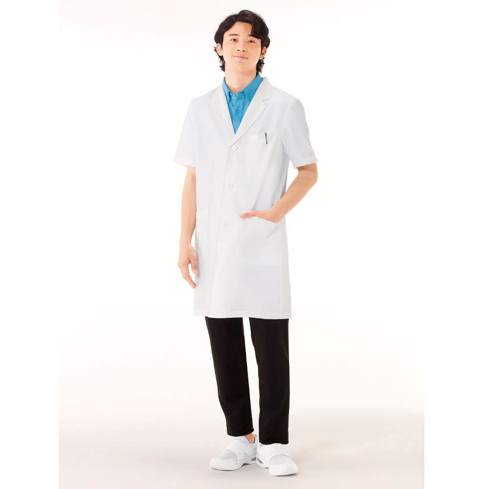2482 デイリー半袖ドクターコート(メンズ/さらりタッチ)【医療 ナース 看護 白衣 男性 病院 実験 研究 ユニフォーム シングル】