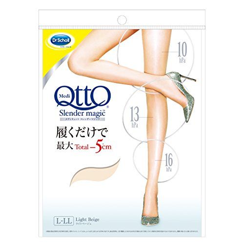 商品説明「メディキュット スレンダーマジック ライトベージュ L-LL」は、履いた瞬間から脚を細く、美脚ラインへ導く着圧ストッキングです。