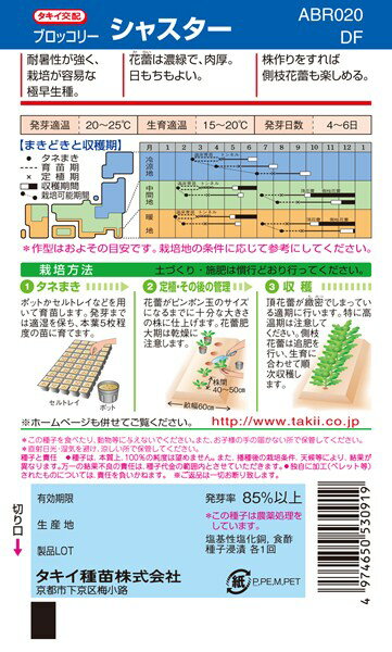 ブロッコリー 種 『シャスター』 1.5ml(DF) タキイ種苗